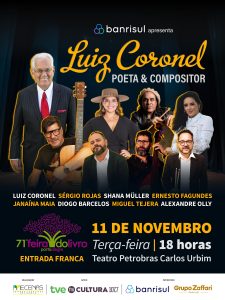 Publicado em: 09/11/2025 às 10:59A 71ª Feira do Livro de Porto Alegre se prepara para receber um dos seus momentos mais aguardados e grandiosos: o espetáculo “Luiz Coronel – Poeta & Compositor”. O evento, que celebra a vasta e rica trajetória do artista, acontecerá no dia 11 de novembro, terça-feira, às 18 horas, no Teatro Petrobras Carlos Urbim. A […]