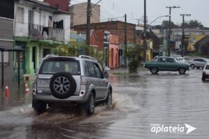 A manhã chuvosa desta segunda-feira (16) causou diversos transtornos à população santanense em vários pontos da cidade. De acordo com a estação INMET localizada na região no Passo do Guedes, interior do município, somente na manhã os acumulados passaram dos 63,18mm de chuva. A instabilidade chegou na fronteira logo nas primeiras horas da manhã, onde houve registros de diversos pontos de alagamentos nos bairros e no centro, provocando o desabamento de parte de uma residência na avenida Saldanha da Gama e interrupção de passagem de veículos e pedestres. Dentro os pontos que registraram alagamento destaca-se a ponte da Praça Artigas, rua Antonio Fernandes da Cunha, esquina com a João Goulart; avenida Dom Pedro II com a João Goulart; rua Dalila Alves Salim, no bairro Jardins; entre outros pontos nos bairros. Nos locais mencionados, por falta de escoamento, uma ‘lagoa’ acabou se formando impedindo a passagem dos motoristas e dos pedestres. Segundo o coordenador da Defesa Civil, Ademir Pacheco, moradores da avenida Brasília, João Goulart, Jardim do Verde, acionaram a coordenadoria pedindo ajuda. “Foi muita água para um pouco espaço de tempo não dando a vasão. Infelizmente esses são os problemas que nós temos na cidade”, destacou Ademir, pedindo a população que não jogue lixo e material orgânico em locais impróprios, afim de evitar alagamentos nos pontos cruciais. Quanto a residência que desmoronou na avenida Saldanha da Gama, a Defesa Civil busca apoio com o exército para que os móveis da moradora possam alocados no quartel, enquanto a família foi deslocada para casa de familiares. Quem necessitar de ajuda, pode acionar a Defesa Civil, através do (55) 98453-7180.