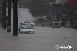 A manhã chuvosa desta segunda-feira (16) causou diversos transtornos à população santanense em vários pontos da cidade. De acordo com a estação INMET localizada na região no Passo do Guedes, interior do município, somente na manhã os acumulados passaram dos 63,18mm de chuva. A instabilidade chegou na fronteira logo nas primeiras horas da manhã, onde houve registros de diversos pontos de alagamentos nos bairros e no centro, provocando o desabamento de parte de uma residência na avenida Saldanha da Gama e interrupção de passagem de veículos e pedestres. Dentro os pontos que registraram alagamento destaca-se a ponte da Praça Artigas, rua Antonio Fernandes da Cunha, esquina com a João Goulart; avenida Dom Pedro II com a João Goulart; rua Dalila Alves Salim, no bairro Jardins; entre outros pontos nos bairros. Nos locais mencionados, por falta de escoamento, uma ‘lagoa’ acabou se formando impedindo a passagem dos motoristas e dos pedestres. Segundo o coordenador da Defesa Civil, Ademir Pacheco, moradores da avenida Brasília, João Goulart, Jardim do Verde, acionaram a coordenadoria pedindo ajuda. “Foi muita água para um pouco espaço de tempo não dando a vasão. Infelizmente esses são os problemas que nós temos na cidade”, destacou Ademir, pedindo a população que não jogue lixo e material orgânico em locais impróprios, afim de evitar alagamentos nos pontos cruciais. Quanto a residência que desmoronou na avenida Saldanha da Gama, a Defesa Civil busca apoio com o exército para que os móveis da moradora possam alocados no quartel, enquanto a família foi deslocada para casa de familiares. Quem necessitar de ajuda, pode acionar a Defesa Civil, através do (55) 98453-7180.