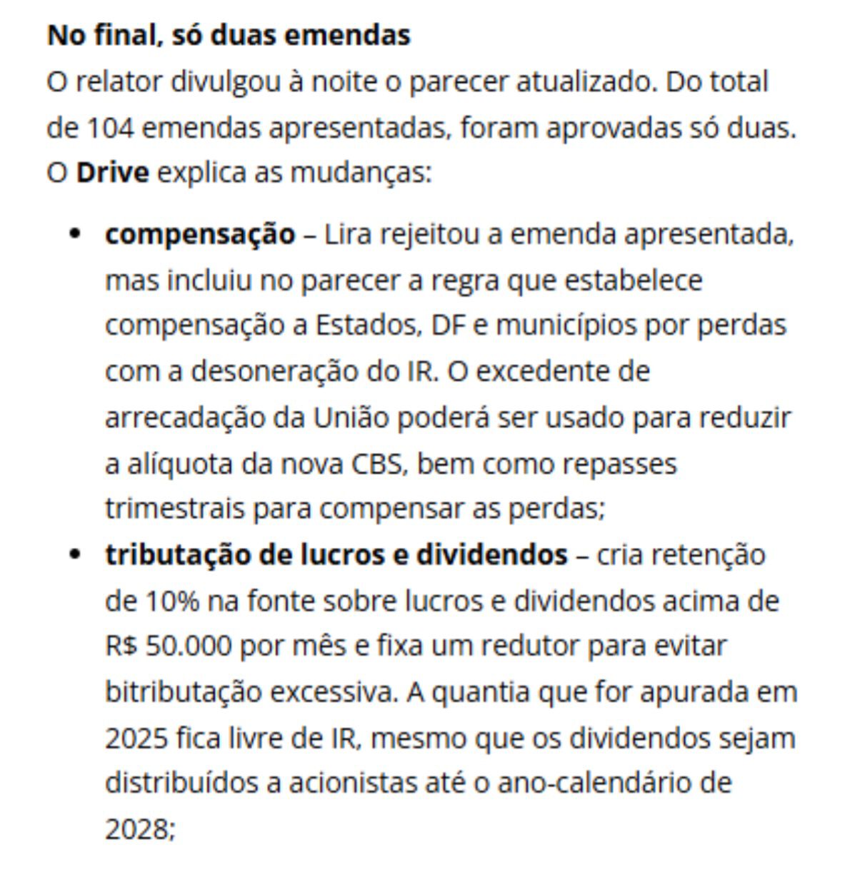 Por unanimidade – Depois de quase sete meses de tramitação, a isenção do Imposto de Renda para quem ganha até R$ 5 mil foi aprovada pelo plenário da Câmara, ontem, por unanimidade: 493 votos. O texto, que também diminui a alíquota para quem recebe até R$ 7.350 por mês, sofreu poucas alterações em relação ao relatório do deputado Arthur Lira (PP-AL), apresentado em comissão especial e avalizado em julho. A taxação de super-ricos em 10% para bancar o avanço da faixa de isenção foi mantida. A matéria segue, agora, para o Senado.