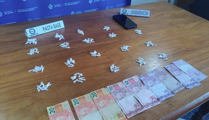 En la oportunidad con apoyo de personal de Seccional 10ª concurrieron a una casa donde habría un hombre invadiendo un predio, por lo que los efectivos procedieron a realizar una inspección, logrando incautar más de 100 gramos de pasta base, un teléfono celular y dinero en efectivo.