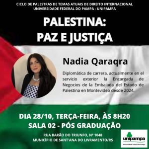 Palestra Palestina: Paz e Justiça será na Unipampa, terça-feira, 28/10, a partir das 08h20