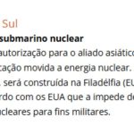 🇷🇺 Putin anuncia que Rússia testou drone submarino com capacidade nuclear; dispositivo ‘Poseidon’ seria capaz de se deslocar a mais de um quilômetro de profundidade, a uma velocidade entre 60 e 70 nós