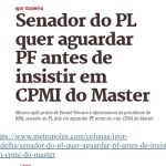 Rio Previdência tentou ajudar – O Tribunal de Contas do Estado do Rio de Janeiro (TCE-RJ) apontou, em outubro, que o Rioprevidência, o fundo que gere recursos que pagam as aposentadorias e pensões de mais de 235 mil servidores públicos estaduais, investiu cerca de R$ 1 bilhão em aplicações do Banco Master. A informação foi divulgada como alerta: os investimentos estariam sendo efetivados mesmo depois das evidências de que o Master passava por uma crise, colocando sob risco recursos do fundo. “O dinheiro do Rioprevidência pode agora virar pó. Como colocam o dinheiro bom de aposentados e pesionistas em um banco de terceira linha, conforme já era classificado pelo Banco Central, e que atuava praticamente em esquema de pirâmide, oferecendo retornos extraordinários e insustentáveis?”, diz à coluna o deputado estadual Luiz Paulo (PSD-RJ), autor de denúncia sobre as aplicações fianceiras. De acordo com o que o TCE divulgou em outubro, o Rioprevidência já tinha cerca de R$ 960 milhões, cerca de 8% do patrimônio do fundo, alocado em letras financeiras do Master, títulos sem cobertura do Fundo Garantidor de Créditos (FGC). Mesmo depois das ressalvas feitas pelo tribunal, novos aportes foram feitos. Técnicos alertaram na época que havia uma “concentração crítica” do patrimônio do Rioprevidência no Master.