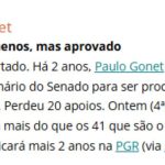 🇧🇷👥 Senado aprova recondução de Paulo Gonet à Procuradoria-Geral da República (PGR) por mais dois anos; foram 45 votos favoráveis e 26 contrários; eram necessários pelo menos 41 votos para a aprovação; a votação é secreta