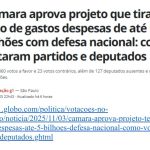 Disputa na segurança – O governo brasileiro intensifica esforços para adiar a votação de um projeto da oposição na CCJ, que equipara grupos criminosos a terroristas. A estratégia é promover o “projeto de lei antifacção”, que prevê penas severas para organizações criminosas. Paralelamente, busca controlar a CPI do crime organizado para mitigar o desgaste político. A oposição, por sua vez, tenta incluir suas propostas no debate e influenciar a composição da CPI.