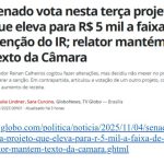 Isenção do IR e fim da escala 6×1 – O plebiscito popular sobre a isenção do Imposto de Renda para salários até R$ 5.000 e fim da escala 6×1 terminou com 2,12 milhões de votos, sendo 60% depositados de forma presencial, segundo a comissão organizadora da consulta. Durante 103 dias, entre julho e outubro, foram colocadas urnas em sedes de sindicatos, movimentos populares, partidos e associações pelo país, para colher os votos. Também foi possível votar de forma on-line. Os resultados serão entregues nesta semana pelos responsáveis pelo plebiscito ao presidente do Senado, Davi Alcolumbre (União-AP), em audiência. A reunião coincide com a previsão de votar o projeto que isenta o IR na Comissão de Assuntos Econômicos da Casa.
