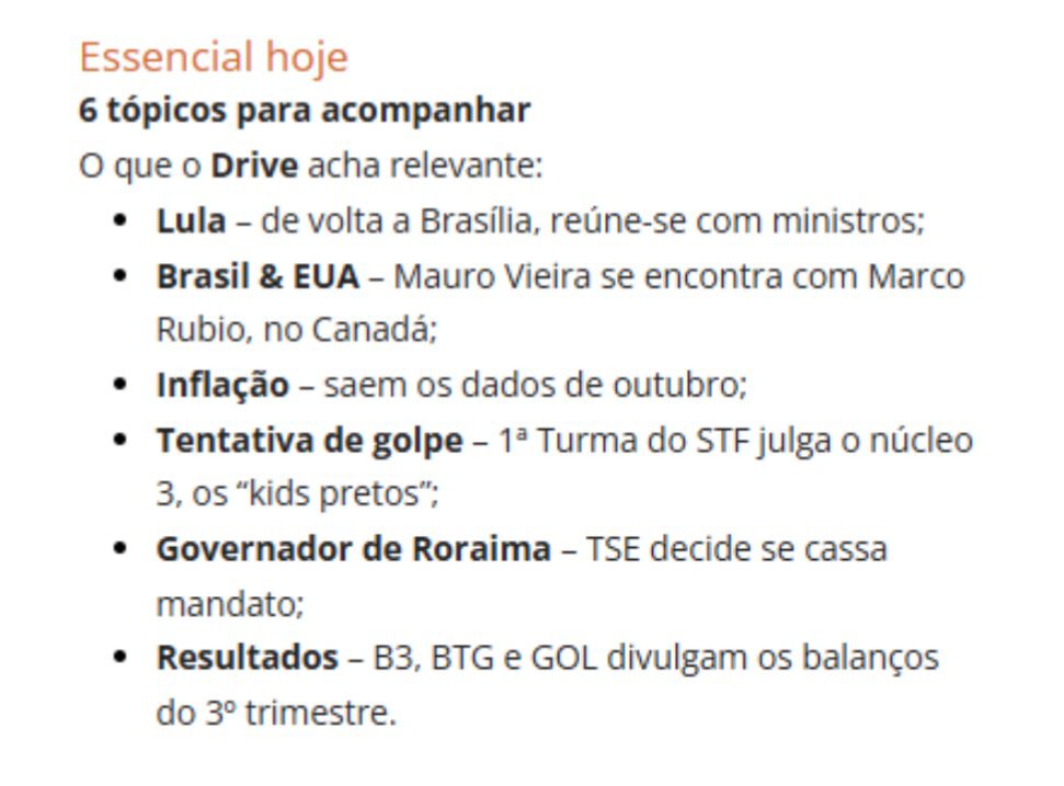 RESUMO DE TERÇA-FEIRA 11/11/2025