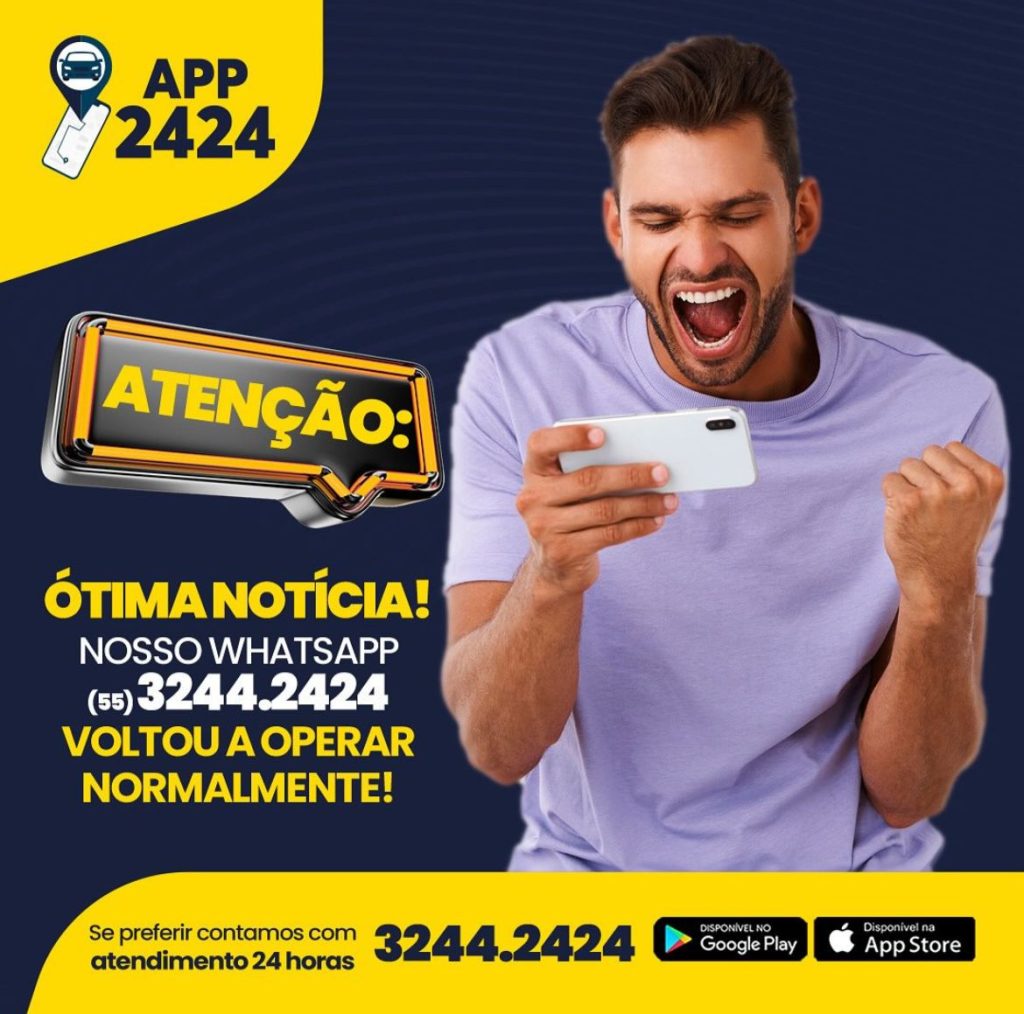 O APP 2424, disponível nas lojas de aplicativos, permite chamar um táxi em poucos toques, acompanhar em tempo real a chegada do veículo, visualizar a identificação do motorista e conferir a estimativa do valor da corrida antes do embarque. O sistema direciona o automóvel mais próximo ao cliente, reduzindo o tempo de espera. As corridas feitas pelo app ainda contam com desconto, e o pagamento pode ser realizado via pix, cartão ou dinheiro.