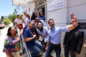 Governador fez selfie com trabalhadores da saúde e pacientes em Santana do Livramento – Foto: João Pedro Rodrigues/Secom
