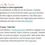 🇧🇷🇺🇸 Lula liga para Trump para falar de tarifas e crime organizado; em chamada de 40 minutos, petista pediu nova redução de taxas sobre produtos brasileiros e discutiu ‘iniciativas conjuntas’ entre os dois países no combate a facções