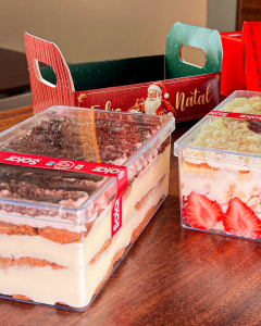 As Cakebox são oferecidas em dois tamanhos e atendem tanto pequenas reuniões quanto encontros maiores. São perfeitas para acompanhar a ceia, presentear alguém especial ou complementar a mesa de Natal com charme e personalidade.