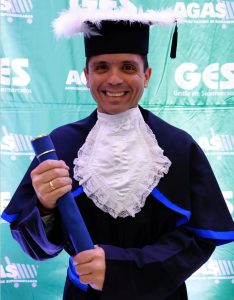 Luís Fernando Posada, diretor da Recofran, celebra a formatura no GES – Curso em Gestão de Supermercados.