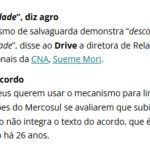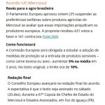 O presidente Luiz Inácio Lula da Silva cobrou, ontem, que líderes de países como a França e a Itália apoiem a assinatura do acordo entre o Mercosul e a União Europeia, prevista para ocorrer no próximo sábado, durante a Cúpula do Mercosul, em Foz do Iguaçu, no Paraná. “Eu espero que o meu amigo (Emannuel) Macron e a primeira-ministra da Itália (Giorgia Meloni) assumam a responsabilidade e que, no sábado, após fazer a reunião do Mercosul, com a participação da União Europeia, es pero que tragam a boa notícia de que vão assinar o acordo e de que não vão ter medo de perder competitividade (com produtos brasileiros)”, enfatizou Lula, em discurso na cerimônia da reunião do Conselho de Participação Social, no Palácio do Planalto. Lula também comentou não haver sentido na resistência de produtores rurais franceses em relação ao acordo, porque os produtos da agricultura da França não competem com os do agrobrasi leiro. “O presidente Macron está muito preocupado com os produtores rurais franceses, que acreditam que vão perder competitividade na disputa com o Brasil. Eles não querem fechar o acordo agora porque a população está meio rebelde na França”, completou.