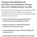 🇻🇪 Após pressão de Trump, ao menos quatro importantes petroleiros cancelam operações em portos da Venezuela; a decisão da empresas foi tomada na segunda-feira (15), depois que Washington apreendeu um navio que transportava quase dois milhões de barris de petróleo bruto venezuelano, que deveriam carregar o recurso até a estatal venezuelana PDVSA