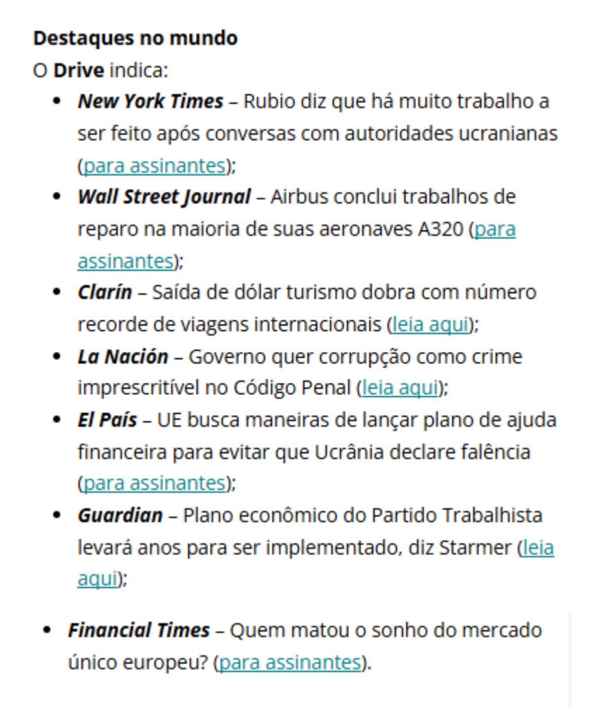 Essas são algumas notícias do dia ✅