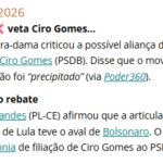 Michelle e deputado trocam farpas por aliança com Ciro – Michelle Bolsonaro criticou a aproximação do PL com Ciro Gomes no Ceará, chamando-a de precipitada, durante evento de lançamento da pré-candidatura de Eduardo Girão ao governo local. A ex-primeira-dama expressou descontentamento com a aliança costurada por André Fernandes, que visa fortalecer a candidatura de seu pai ao Senado. Michelle foi tratada como “presidenciável” no evento, enquanto Deltan Dallagnol mencionou seu nome e o de Romeu Zema como potenciais candidatos ao Planalto.