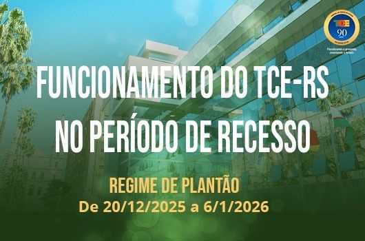 O Tribunal de Contas do Estado do Rio Grande do Sul (TCE-RS) estará em recesso institucional no período de 20 de dezembro de 2025 a 6 de janeiro de 2026. Durante esse intervalo, também ficam suspensos os prazos processuais, conforme previsto na Resolução nº 1.067/2016, com a suspensão válida de 20 de dezembro de 2025 a 20 de janeiro de 2026.