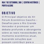 O principal objetivo do XII Fórum Econômico Gaúcho é fomentar uma discussão abrangente sobre os desafios vividos pelo Rio Grande do Sul, estimulando a construção de soluções para impulsionar atividades econômicas estratégicas, especialmente no agronegócio, setor fundamental para a economia gaúcha.