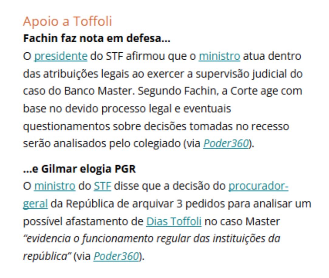 🇧🇷👥 Parlamentares da oposição pedem impeachment, suspeição e investigação contra Dias Toffoli; a revelação de novos indícios de possíveis conflitos de interesse envolvendo o ministro do Supremo Tribunal Federal (STF), intensificou a ofensiva da oposição no Congresso; além dos questionamentos sobre sua atuação no inquérito que apura fraudes no Banco Master, parlamentares passaram a reunir ao caso outras informações sobre um resort com cassino ligado a familiares do ministro — empreendimento que, até fevereiro de 2025, pertencia a dois irmãos dele