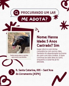 Hanna: pronta para trazer amor e alegria a um novo lar.
