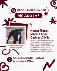 Thanos: um companheiro fiel à espera de um lar cheio de afeto.