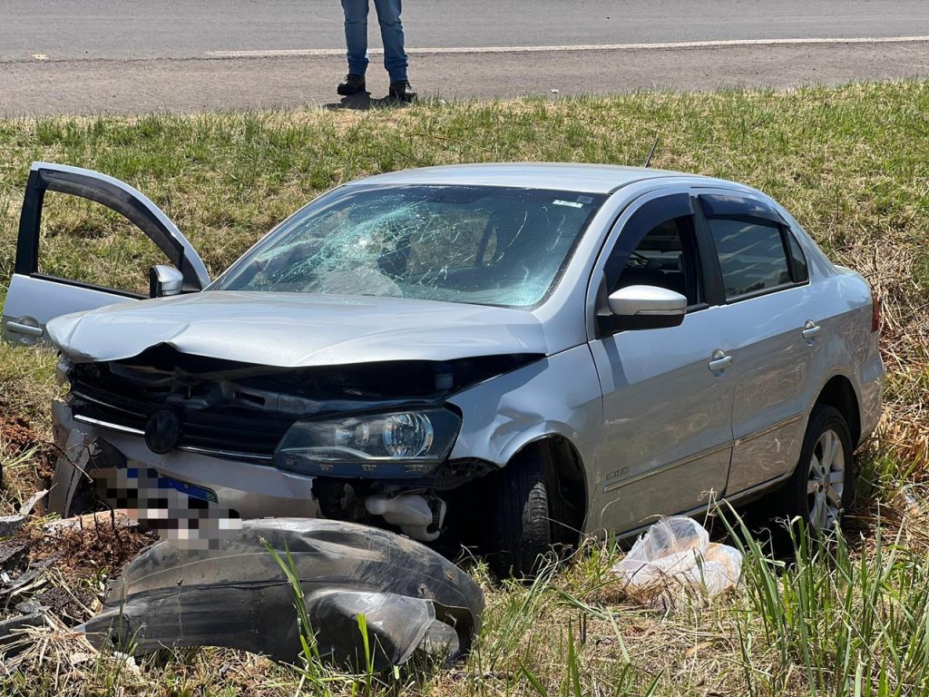 Logo ao fazer o desvio, o veículo teria caído em um declive, à esquerda do acostamento, ficando preso às ferragens com o impacto da queda.