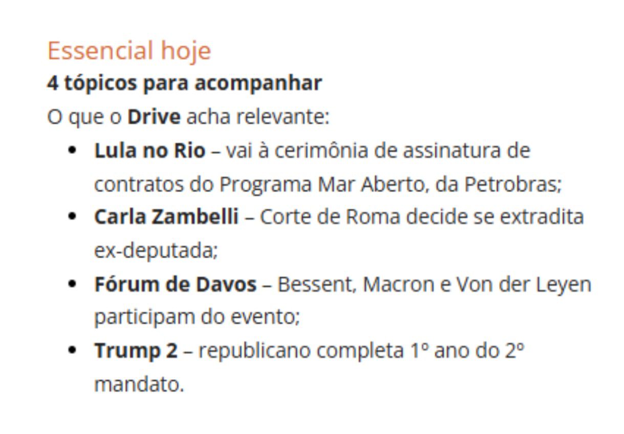RESUMO DE TERÇA-FEIRA – 20/01/2026