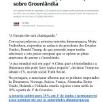 🇪🇺🇬🇱 Europa não quer “brigar” pela Groenlândia, mas manterá sua posição, diz União Europeia; chefe de política externa do bloco, Kaja Kallas, fez declaração nas redes sociais nesta segunda-feira (19)