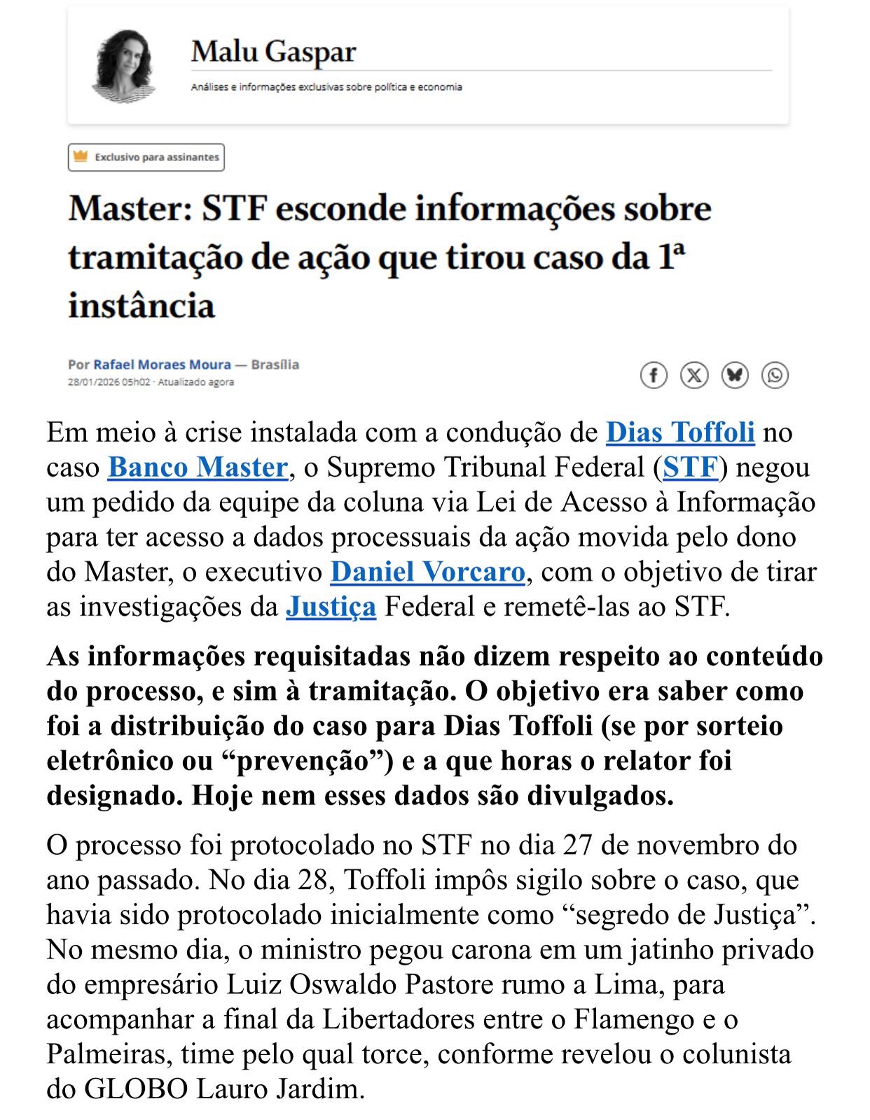 MUDANÇA de alvo – Até aqui, a parte interessada do mercado financeiro atacava o ministro do Supremo Tribunal Federal Dias Toffoli para tentar catapultá-lo da relatoria do caso Master. Não conseguiu. Agora, a mira se volta ao governo do presidente Lula e a reunião de 2024, pedida pelo então consultor do Master, Guido Mantega, ex-ministro de Lula e de Dilma Rousseff.