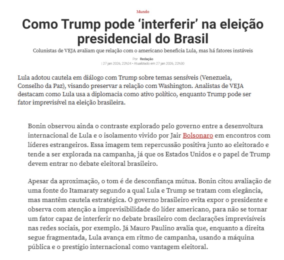 EM defesa da ONU – O presidente Luiz Inácio Lula da Silva conversou, ontem, com o presidente da França, Emmanuel Macron, sobre a Organização das Nações Unidas (ONU) e a respeito do Conselho de Paz, criado pelo presidente dos Estados Unidos, Donald Trump, sob a alegação de acompanhar o processo de reconstrução da Faixa de Gaza, devastada pela guerra entre Israel e Hamas. A situação na Venezuela, invadida por tropas americanas no início de janeiro, também foi tema da ligação. Lula e Macron endossaram a necessidade de fortalecimento da ONU. A bandeira é levantada pelos dois países enquanto os EUA esperam uma resposta do Brasil sobre um convite para integrar o Conselho de Paz. A posição do Planalto, até o momento, é de conversar com líderes mundiais antes de se posicionar. Macron, por sua vez, já negou o convite para a França integrar o Conselho. A justificativa é de que o colegiado pode ter potencial de enfraquecer a ONU.