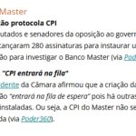 CPMI do Master mira STF – Parlamentares da oposição na Câmara dos Deputados e no Senado protocolaram, ontem, o pedido de criação de uma Comissão Parlamentar Mista de Inquérito (CPMI) para investigar as fraudes do Banco Master. Assinaram o requerimento 280 parlamentares — 238 deputados e 42 senadores —, sendo que alguns da base governista apoiaram a proposta, como o senador Fabiano Contarato (PT-ES) e os deputados Tabata Amaral (PSB-SP) e Túlio Gadêlha (Rede-PE). O deputado Carlos Jordy (PL-RJ) esteve à frente do recolhimento das assinaturas e deixou claro que um dos focos das apurações são ministros Dias Toffoli e Alexandre de Moraes, do Supremo Tribunal Federal (STF).