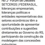 Às 14h, em Porto Alegre, participo, como mediador, do 2º Fórum de Debates SETCERGS / FEDERASUL