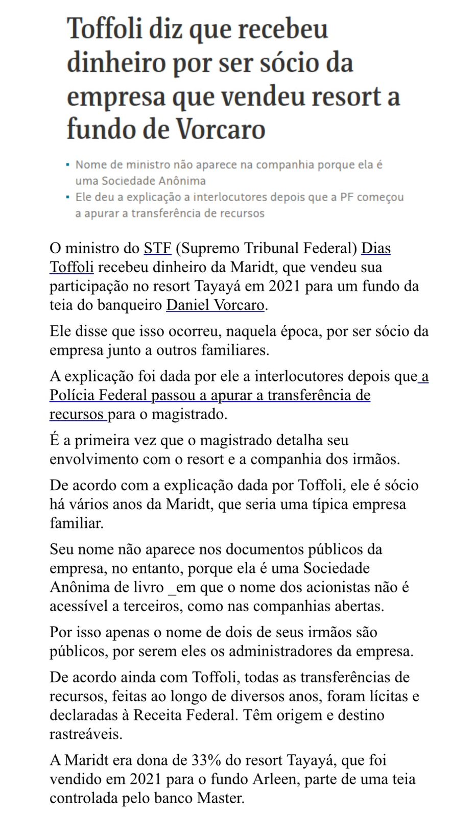 O texto abaixo está em