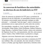 VAZAMENTOS seletivos – Na abertura do Ano do Judiciário de 2026, o presidente nacional da OAB, Beto Simonetti, fez questão de criticar o que chamou de “vazamentos seletivos” de operações policiais como possíveis quebras de sigilo entre advogados e clientes. “A democracia não convive com práticas de exceção e o uso de vazamentos eletivos orientados por interesses políticos ou estratégicos, com o objetivo de constranger instituições, especialmente o Supremo Tribunal Federal. (O vazamento) é absolutamente incompatível com o sistema democrático”, afirmou.