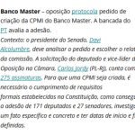 🇧🇷👥 Deputado protocola pedido de CPI do Banco Master; requerimento reúne 201 assinaturas e busca apurar negociações de R$ 12 bilhões em títulos considerados de ‘qualidade duvidosa’; Rodrigo Rollemberg aponta risco aos cofres públicos