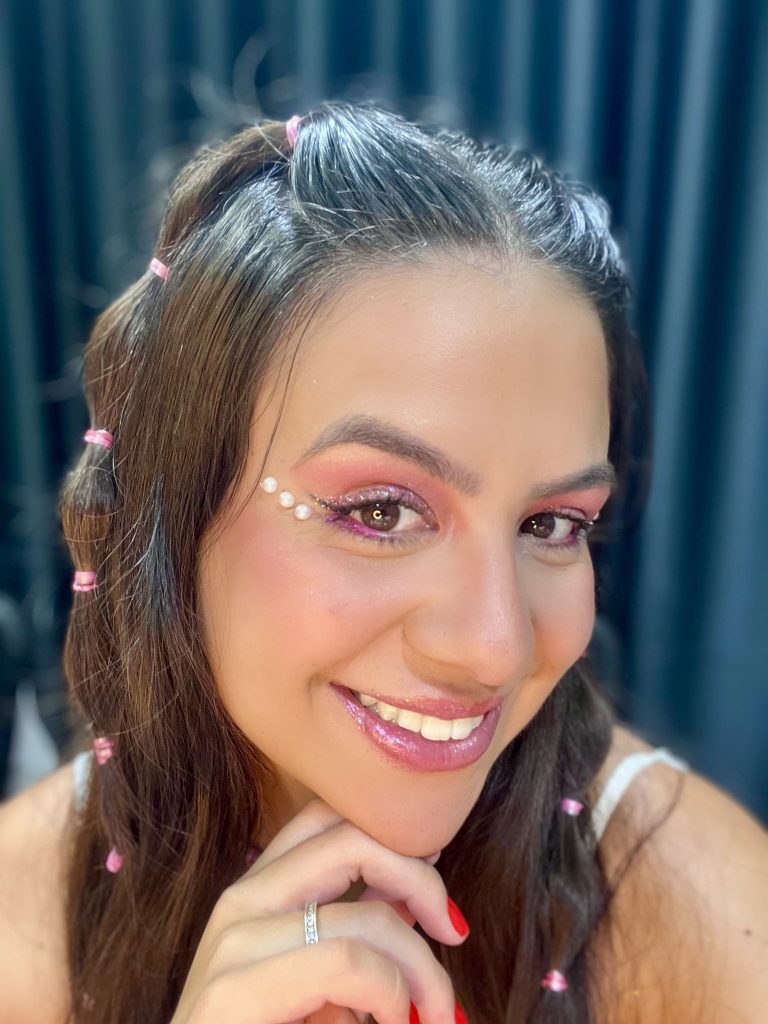 Outra tendência forte para o Carnaval 2026 são os strass e aplicações faciais. Cristais, pedrarias e pontos de luz estratégicos elevam qualquer produção e transformam maquiagens simples em composições impactantes.