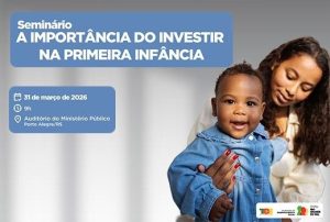 Estão abertas as inscrições para o seminário A Importância de Investir na Primeira Infância, que será realizado no dia 31 de março, às 9h, no Auditório Modercil Paulo de Moraes, no Ministério Público, em Porto Alegre. O evento é promovido pela Secretaria de Desenvolvimento Social (Sedes), por meio do Departamento de Atenção à Primeira Infância, com apoio institucional do Tribunal de Contas do Estado (TCE-RS).