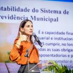 A auditora Aline Buss explicou, da parte do TCE-RS, a situação atual dos Regimes Próprios de Previdência Social (RPPS), os reflexos da reforma da previdência nos municípios e as responsabilidades do Poder Executivo na sustentabilidade do sistema. Apresentou dados que mostram o baixo número de municípios gaúchos que aprovaram a reforma da previdência até o momento, menos de 40% entre os 330 que possuem RPPS. Em outros estados do Brasil, esse percentual já é maior que 80%. Além disso, explanou temas como déficit atuarial, custeio, governança, impacto orçamentário e a importância da atuação administrativa bem fundamentada para evitar riscos fiscais futuros.