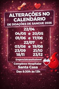 Alterações no calendário de doações de sangue 2026