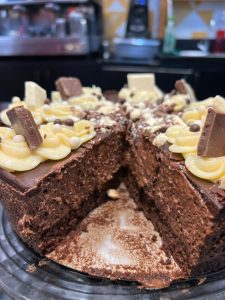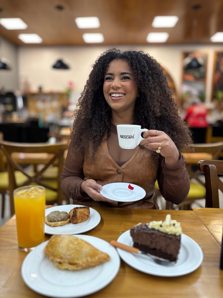 Na linha de doces, a variedade também chama atenção. Bolos e tortas em diferentes versões, como brigadeiro, red velvet e combinações com chocolate, dividem espaço com brownies e sobremesas elaboradas, reforçando a proposta de oferecer opções que harmonizam com o café em diferentes momentos do dia.