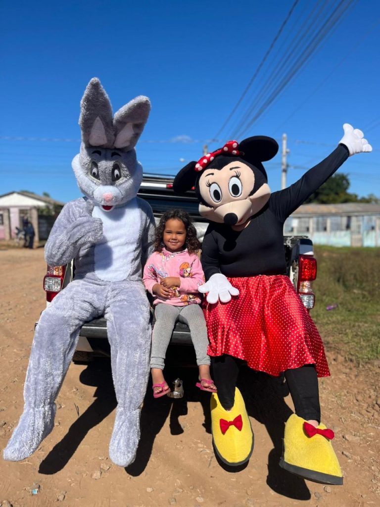 Ao longo do dia, a comitiva percorre diferentes bairros do município, realizando a distribuição de chocolates e levando, junto com o coelho da Páscoa, momentos de carinho, acolhimento e alegria para crianças e famílias.
