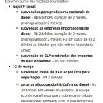 → Subvenção de R$ 0,80 por litro de diesel produzido no Brasil.