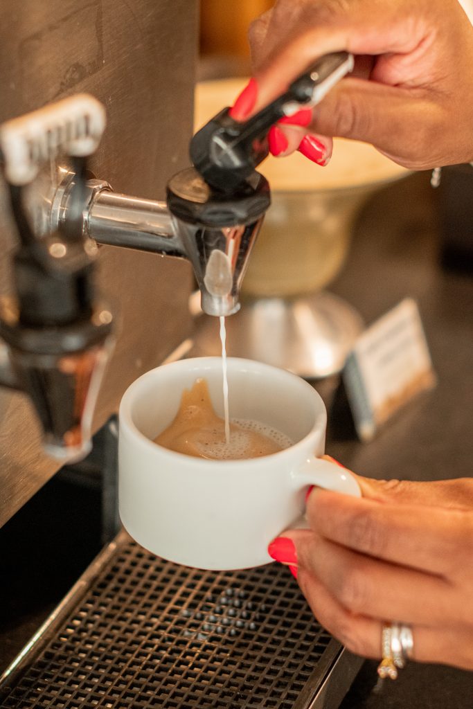 O café, elemento central da proposta, acompanha o buffet como parte essencial dessa experiência, complementando as escolhas e reforçando o caráter acolhedor da refeição.