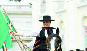 A jornalista santanense Valéria Maciel, apresentadora do Programa, Cavalos participou do Desfile Farroupilha