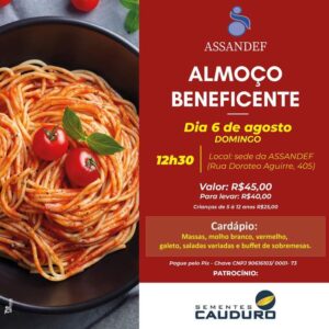 A sede da Associação Santanense do Deficiente Físico será o local de mais um almoço em benefício das famílias assistidas pela instituição. Desta vez, o cardápio servido será: massas, molho branco e vermelho, galeto, saladas variadas e um buffet de sobremesas. Os convites, no valor de R$ 45 para comer no local; ou R$ 40 […]