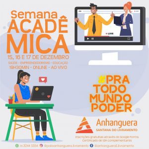 A Semana Acadêmica Anhanguera acontece nos dias 15, 16 e 17 de dezembro, de forma totalmente online e com inscrições gratuitas. O Time Anhanguera conseguiu juntar Mestres, Doutores e Bacharéis de todo o Brasil para compartilhar conhecimento e experiências profissionais conosco. O evento é aberto à comunidade e é uma grande oportunidade de aprendizado e […]