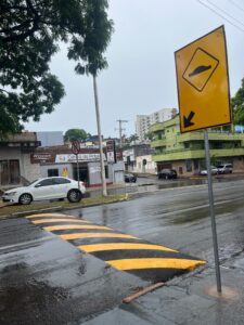 Dois quebra-molas foram instalados na Avenida João Belchior Goulart