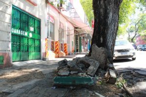 Além disso, as raízes quebraram parte da calçada e também provocaram rachaduras nos imóveis