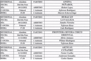 Encuentros revancha en cuartos de final de la primera división del campeonato Rivera 2023